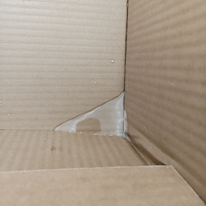 ● За сценарии като кухненско съхранение, транспортиране в дъждовни дни и оборот на пресни продукти, които могат да попаднат във вода, външната част на кутията е изцяло покрита с прозрачен восъчен филм за храна. Случайни разливи на соев сос или вода могат лесно да бъдат избърсани с кърпа и восъчният филм няма да се отлепи или да позволи на влагата да проникне в хартиените слоеве, причинявайки омекване на кутията. Дори при кратки леки пръски от дъжд няма да има следи от вода и твърдостта на кутията остава непроменена.